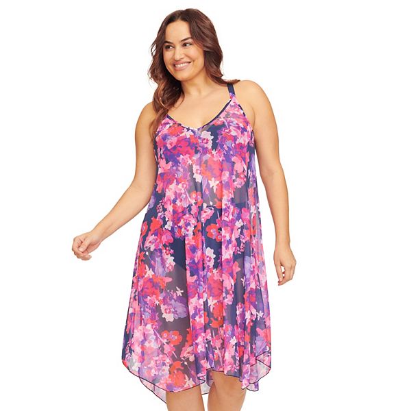 Plus Size Mazu Swim Mid Length Flowy Mesh Swim Cover Up Dress